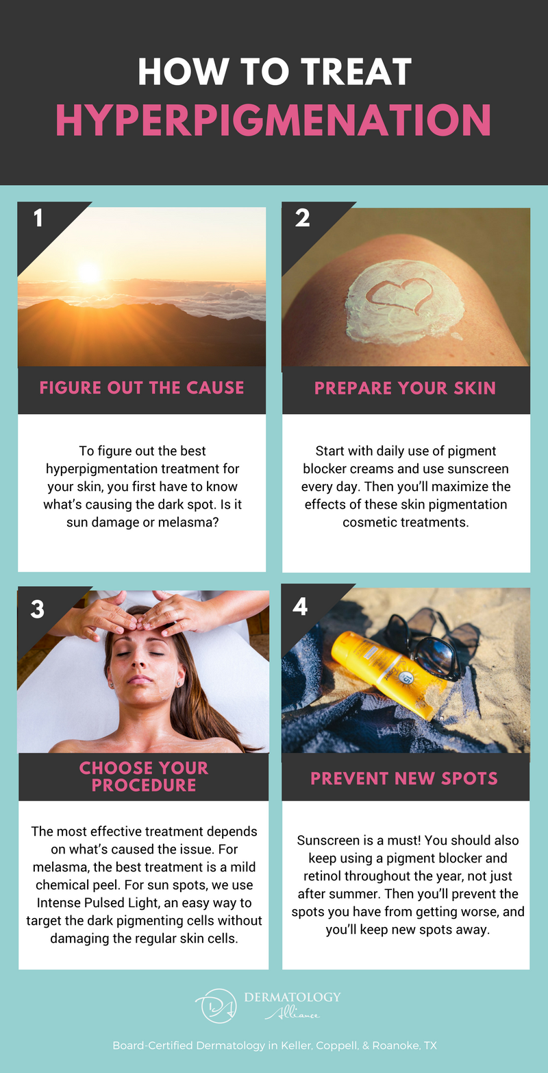 To figure out the best hyperpigmentation treatment for your skin, you first have to know what’s causing the dark spot. Is it sun damage or melasma? Melasma is a condition caused by hormones, but exacerbated by the sun. Hence, we have to treat it differently than regular sun damage. That’s why it’s important to get to a skin care professional — the sooner you get the right diagnosis, the sooner you’ll find the right treatment.